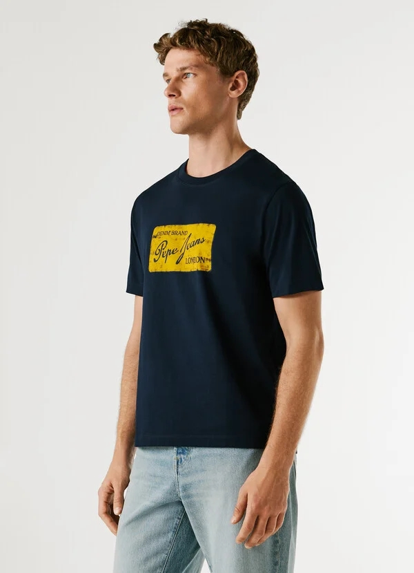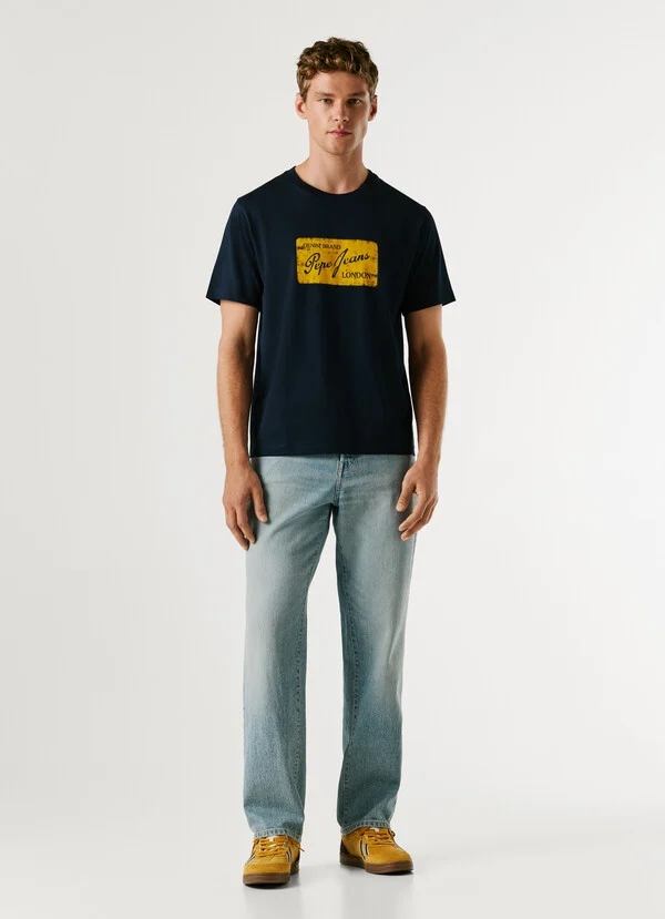 – Logo PEPEJEANS con efecto desgastado estampado en el pecho
