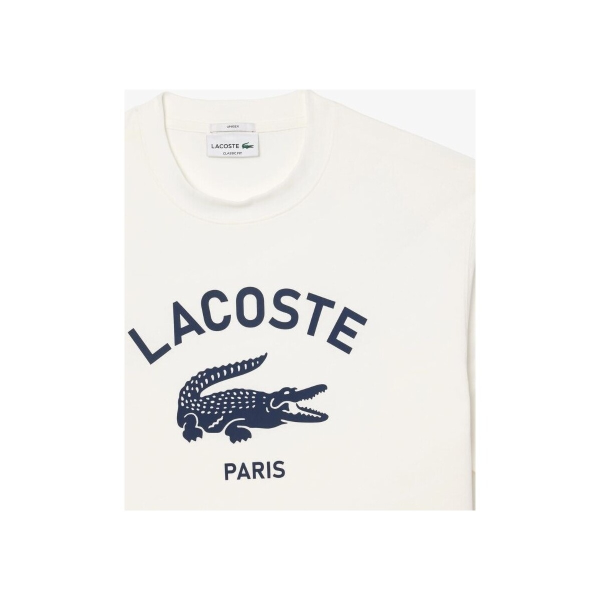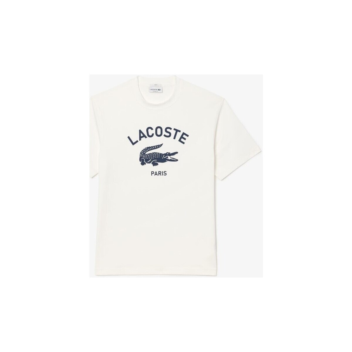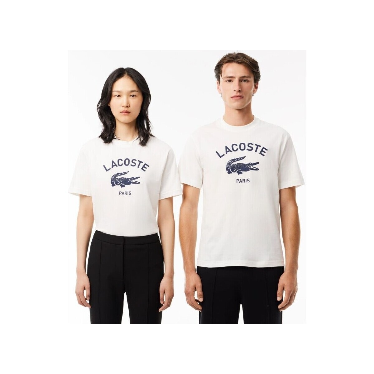 Camiseta blanca con estampado lacoste de corte clásico. Un básico del vestuario Lacoste, concebido para moverse contigo. Esta camiseta de punto jersey grueso hace gala de detalles de marca icónicos y un plisado decorativo. Un diseño cálido y cómodo, con un acabado impecable. Una prenda versátil creada para la vida moderna. Estampado en contraste en el pecho. Cocodrilo bordado en la parte de atrás.