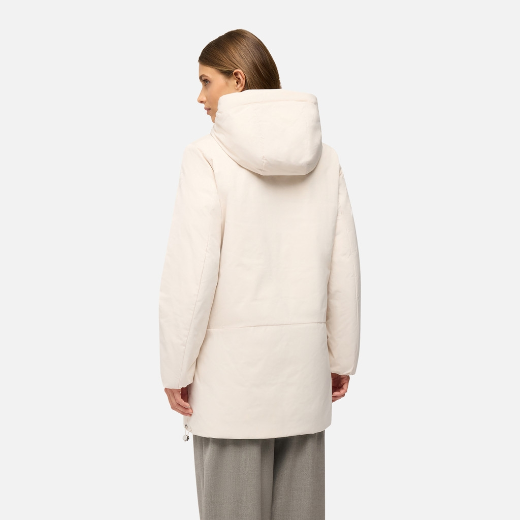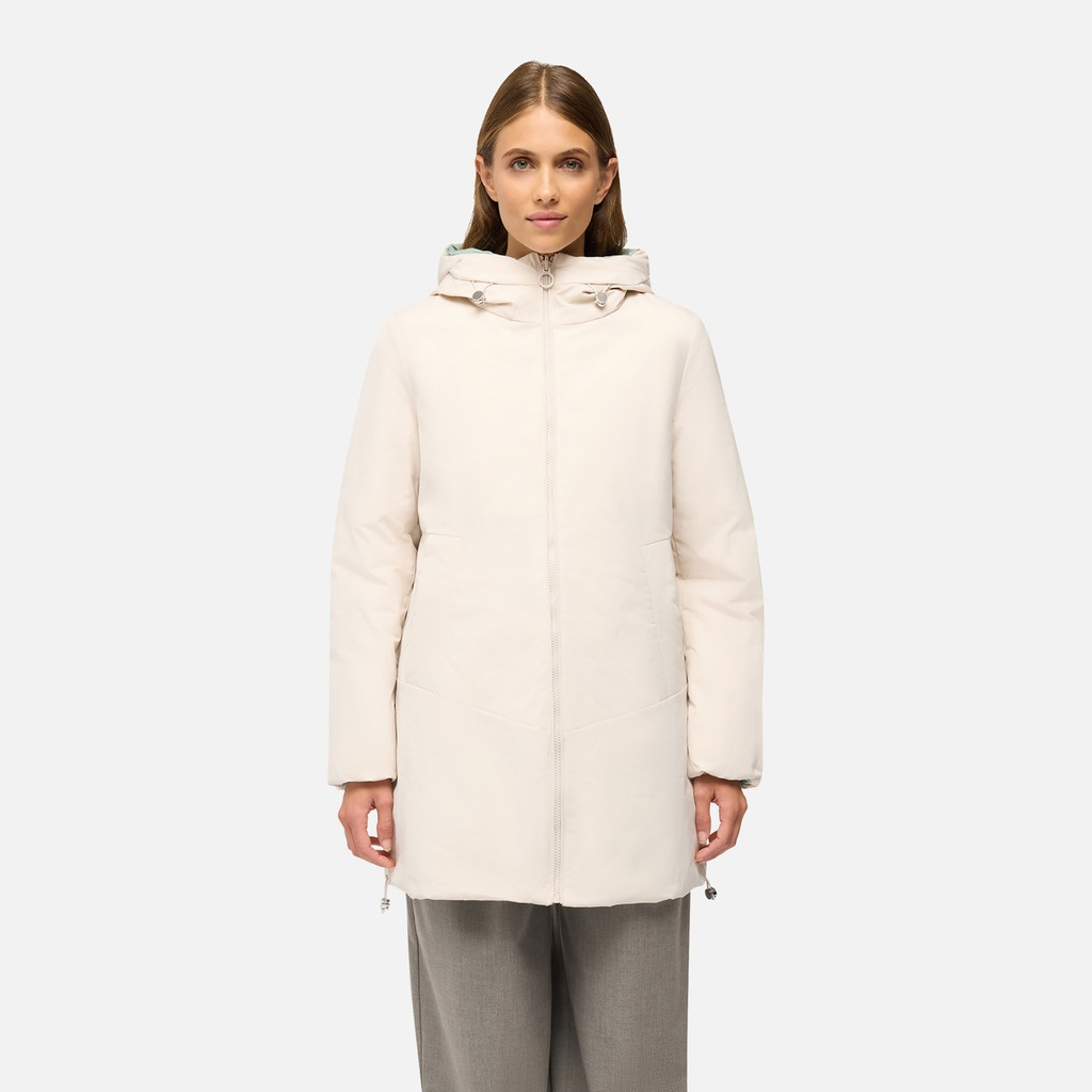 Parka reversible para mujer que ofrece una combinación de funcionalidad y estilo contemporáneo, lo que la convierte en el complemento perfecto para atuendos urbanos. Confeccionada en tafetán de poliéster con forro acolchado de nailon, garantiza repelencia al agua y protección contra el viento, aliviando incluso las condiciones climáticas más adversas. Spherica™ es una prenda transpirable y cómoda que será la forma ideal de afrontar los días en la ciudad con confianza, incluso cuando el clima sea adverso.